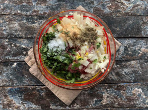 Дадайце соль, перац. Можна яшчэ дадаць сушанага часныку.