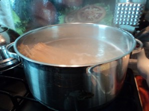 3. Макароны зварым, як указаны на ўпакоўцы. Пасолім па смаку. Сцячым праз друшляк і пачакаем, пакуль сцячэ вада.