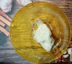 Дадайце ваду, замесіце цеста. Накрыйце яго плёнкай і пастаўце ў цёплае месца на паўтара гадзіны.