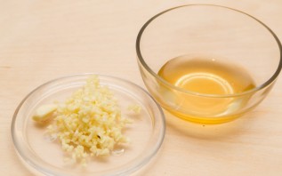 Усё вельмі проста. Наліваем вараную мядзь у посуд для соусу. Часнык чыстым, дробім нажом ці з дапамогай блендэра.
