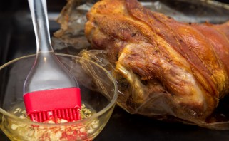 Змяшаем мёд з часныкам, пасаліваем і паперчваем па смаку. Гатовым саусам можна пасмальваць курыцу перад засмажваннем, а можна падаваць яго да ўжо гатовай птушкі.