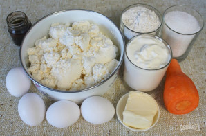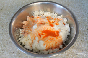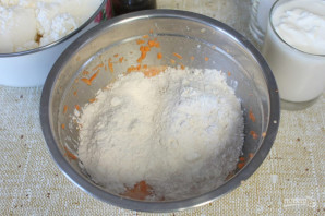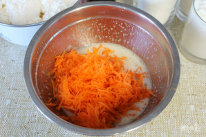 Морковь трем и отживаем сок. Сок понадобится позже, а сухую морковь добавляем в миску.