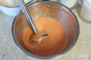 Творожную массу перемешиваем блендером до однородной консистенции.