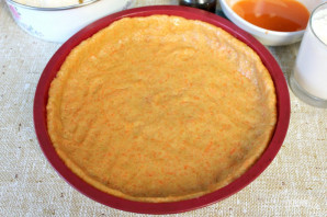 Тесто распределяем по форме. Делаем высокий бортик по всему периметру. Заготовку ставим в разогретую до 200 градусов духовку на 7-10 минут.