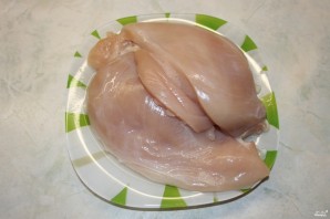 Курынінае філе прамойце пад цячучай вадой, абсушыце і нарэжце на парцыяныя кавалачкі.