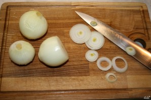 Лук пачысціце і нарэжце кальцамі.