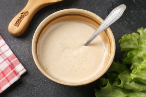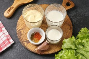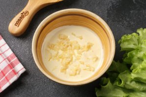 Змяшайце смятану і майёнез. Дадайце цёрты чыстак.