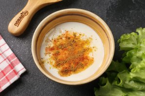 Уліце кефір, перамяшайце і дадайце прыправы.