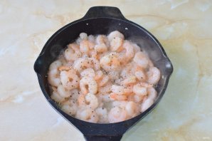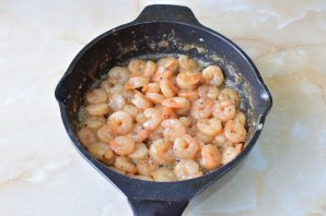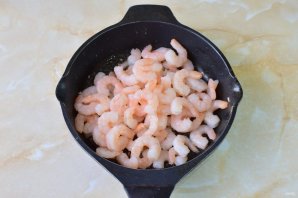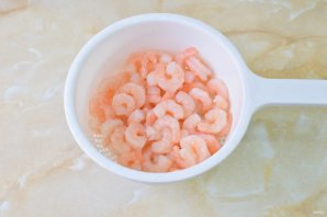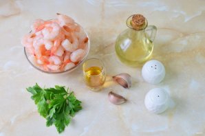 Перед началом приготовления подготовьте все ингредиенты. Креветки берите уже без панциря.