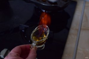 Огонь от горячего спирта хорошо виден в темном помещении.