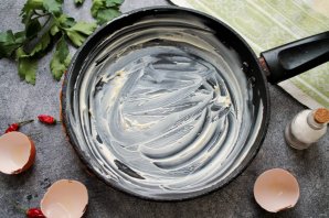 Чугунную сковороду диаметром 22 сантиметра полностью смажьте сливочным маслом.