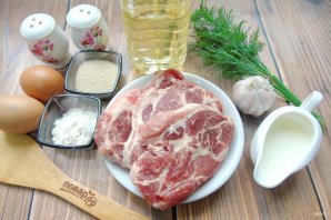 Подготовьте ингредиенты для приготовления отбивных в чесночно-укропном соусе.