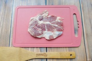 Свиную шейку помойте, обсушите салфеткой и нарежьте на стейки толщиной около 1 сантиметра. После отбейте с обеих сторон.