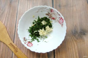 Приготовьте маринад. Укроп нарежьте как можно мельче. Чеснок натрите на самой мелкой терке или пропустите через пресс.