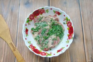 Каждую отбивную посолите, поперчите и смажьте маринадом со всех сторон. Держите мясо в маринаде 1-2 часа.