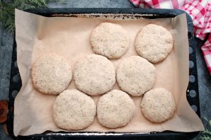 Противень с печеньем поставьте в горячую духовку и выпекайте при температуре 180 градусов в течение 20-25 минут. Не держите печенье долго, оно станет жестким. Спустя время дайте печенью остыть и подавайте к столу.