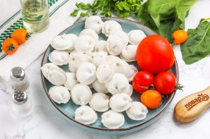 Подготовьте указанные ингредиенты. Пельмени выбирайте любого вида: со свининой, говядиной, курицей и т.д. Лучше всего использовать пельмени небольшого размера — они быстрее прожарятся.