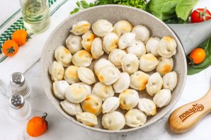 Обжарьте пельмени в течение 4-5 минут на среднем нагреве и переверните на другую сторону. Обжарьте такое же количество времени. Следите за пельменями, чтобы они не подгорели.