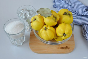 Подготовьте айву, сахар и воду. Приступим!