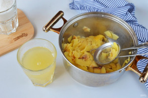 Отцедите очистки от жидкости. На этой "воде" будем варить повидло.