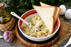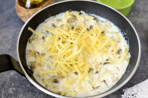 Як толькі згуснеюць вершкі, адразу ж пасаліце страву і папярчыце па смаку. Дадайце цёрты сыр і хутка перамяшайце, каб сыр добра расплаўвіўся.
