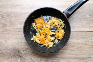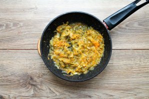 У сковороду наліце раслінную алей і выкладзіце дробна нарэзаны цыбулю і цёртую маліну. Пасмажце пасолку на сярэднім агні ў працягу 5-7 хвілін.