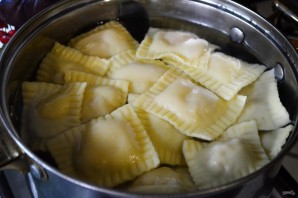 Давядзіце ваду да кіпення, пасаліце. Варыце равіёлі 5-7 хвілін.