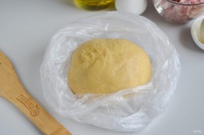 Прыгатуйце прадукты для цеста і фаршу. Я выкарыстоўваю змешаны фарш: кавалачак ялавічыны, свініны.
