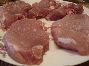 Рэжам свініну на парцыённыя кавалкі.