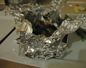 Пад канец прыгатавання можна крыху адкрыць фольгу — мяса павінна вельмі лёгка разразацца.
