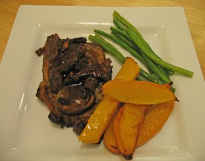 Для прыгатавання рамштэксаў з сьвіны ў духоўцы нам спатрэбіцца адборны кавалак сьвіны з шыі, дзёнская гарчыца, кісласлодкі саус для мяса (напрыклад, вустэрскі) і вялікія шампіньёны. Глядзім далей рэцэптуру