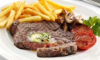 Ромштэксы з бульбамі фрыцаванымі ў глыбокім жыры