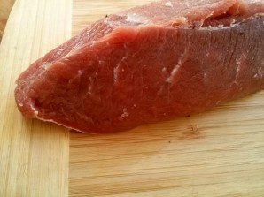 1. Галоўны сакрэт правільнага ростбэфа — гэта ідэальны шматок мяса. Яго трэба вымыць, падсушыць руханкай і пазбавіцца ад усіх плёнак і сухажылляў. Каб ялавічына была ідэальна прыгатаваная, мяса трэба гатаваць цэлым шматком. За 1 гадзіну да прыгатавання дастаньце мяса з халадзільніка, каб мяса мела аднолькавую тэмпературу (унутры і звонку). Так ростбэф прасмажыцца раўнамерна.