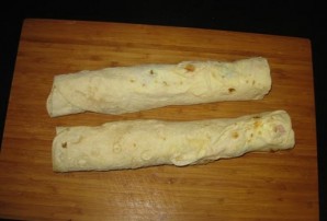 9. Аккуратно сворачивайте лаваш, чтобы он не треснул, но при этом был плотно завернут.