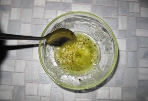 2. И соедините его с оливковым маслом. Как следует перемешайте, при необходимости добавьте щепотку перца и соли, например.