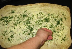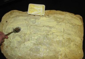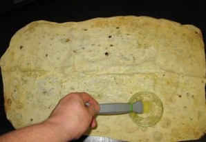 3. Разложите на столе лаваш, смажьте его как следует чесночным маслом.