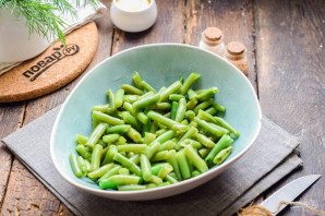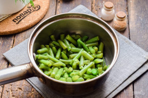Фасоль знявайце наперад з моразільніка, зварыце 3 хвіліны і адразу злівайце ваду.