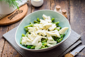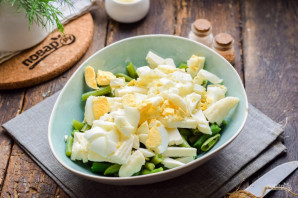 Салат гатоўціцца хутка і проста. Акрамя бабовых мы дадамо трохі сыру і курыныя яйкі — адрознае спалучэнне інгрэдыентаў насмак. Для застужкі можна ўзяць як майонез, так і смятану. Салат можна падаваць да стала самастойна, альбо з гарнірамі па вашаму меркаванню. Бярыце рэцэпт на ўвагу і гатуйце з задавальненнем. Салат гатовы да падачы.
