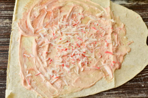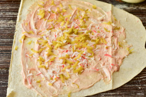 Натрите сверху крабовую палочку.