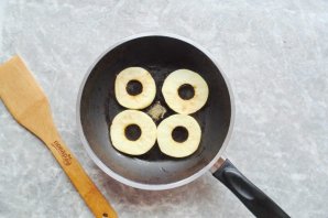 Абсмажвайце яблыкі на масле з абодвух бакоў 3-5 хвілін.