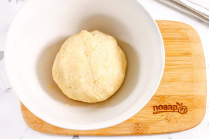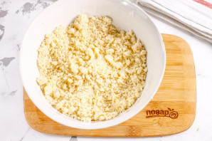 Соберите крошку из теста в колобок, накройте пищевой пленкой и поместите в холодильник на 20 минут.