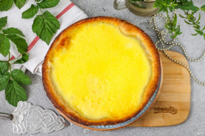 Готовый пирог извлеките из духовки и дайте ему остыть при комнатной температуре, а после перенесите в холодильник на 1 час. Затем его можно подать к столу.