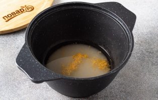У пасудзе з таўстым дне замесіце цукар, ваду і цытрусавую цедру. Давядзіце да кіпення. Кіпяціце 5 хвілін. Патым ахаладзьце сіроп да камнатнай тэмпературы. Пры жаданні можна працягнуць яго праз цедру.
