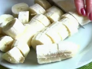 1. Ачысьціце бананы ад шкуркі, нарэжце іх кружочкамі.