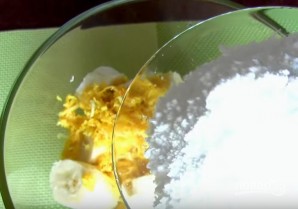 4. Змяшайце бананы, цытрусавую цедру і лімонны сок. Дадайце цукровую пудру і збіце ўсё блендэрам.