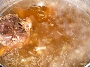 4. Пакладзём нашу бурачную застуду ў бульён, варым каля 15 хвілін.