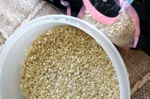 Прапалосці ячменную прамойце і залейце халоднай вадой. Адварыце да паўгатоўнасці, хвілін 20. Сцякіце праз сіта і прамойце ад лепкасці. Я звычайна адразу вару шмат такой ячменнай крупы і замарожваю. Потым зручна дадаваць у розныя стравы.