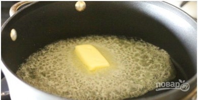 У высокую сковороду або сотэйнік пакладзіце сметанковае масла, растапіце яго на сярэднім агні да пузрыкаў.
