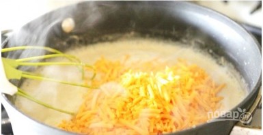 Засыпце цёрты сыр і змяшайце да ўтварэння аднастайную сумесі (на мінімальным агні).