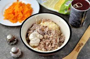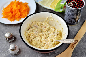 Филе слабосоленой сельди пропустите через мясорубку или также протрите на крупной терке, приложив немного усилий. Добавьте любимый майонез и молотый перец по вкусу.